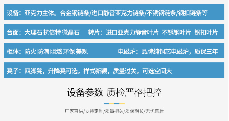 溫馨提示:在此溫馨提示廣大消費者,目前旋轉(zhuǎn)小火鍋設(shè)備銷售公司眾多。希望您在采購設(shè)備時,一定找正規(guī)廠家合作,簽訂具有法律效應(yīng)的合同,最好到公司實地考察對比產(chǎn)品,保證產(chǎn)品的質(zhì)量以及投資的可信度。一次購買,終生放心,歡迎各地朋友來青島公司蒞臨考察,我們會提供最專業(yè)的服務(wù)與參考。